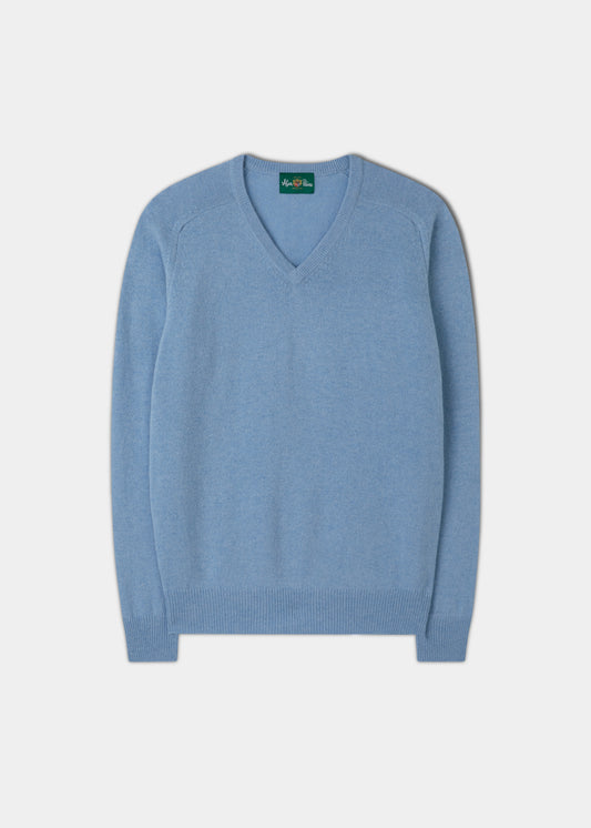 Men's Lambswool Vee Neck Jumper in Iceberg - Regular Fit