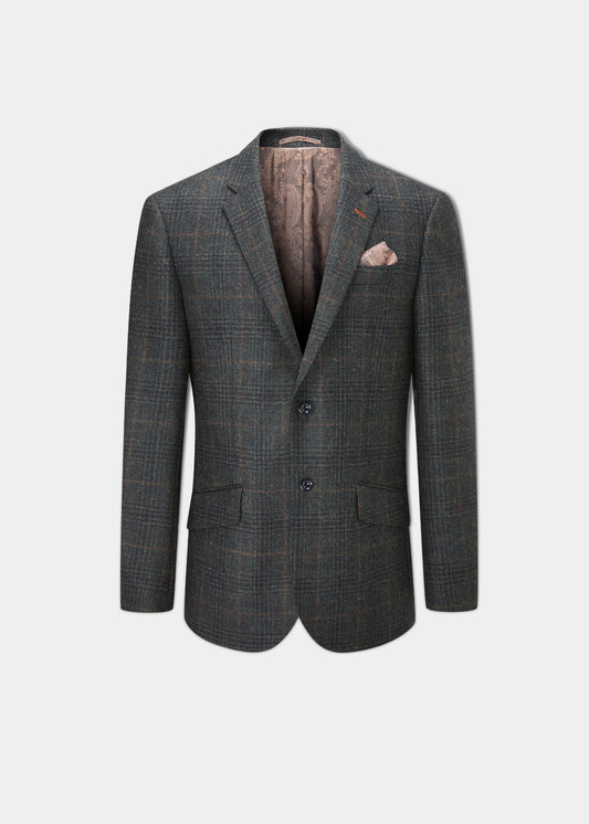 Surrey Tweed Lined Blazer In Green Check - Regular Fit