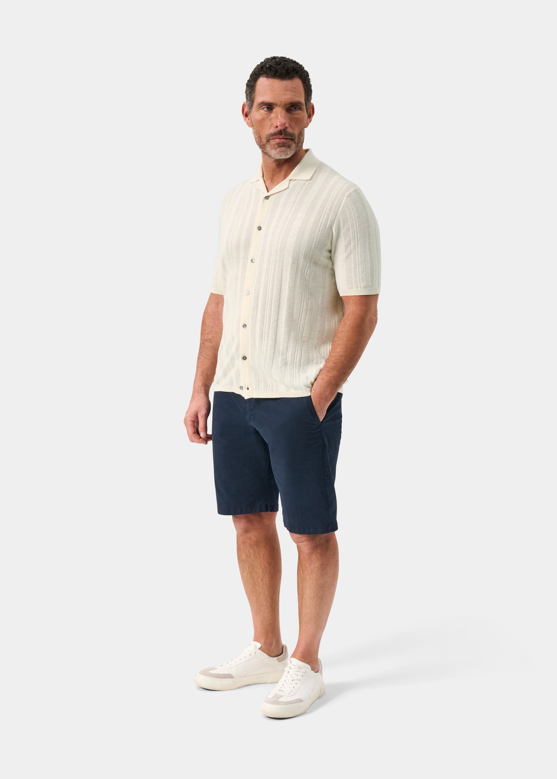 The Abbotsbury Men's Short Sleeve Cotton Shirt combines natural breathability with refined elegance. Crafted from a premium blend of 60% cotton, 30% linen, and 10% silk, this ecru shirt delivers exceptional comfort for warm weather while maintaining a polished appearance. The silk content adds a subtle lustre and softness, whilst linen ensures durability and moisture-wicking properties. Perfect for layering over a t-shirt or wearing standalone, this versatile piece transitions effortlessly from casual weekends to smart-casual occasions. An essential addition to any man's wardrobe.