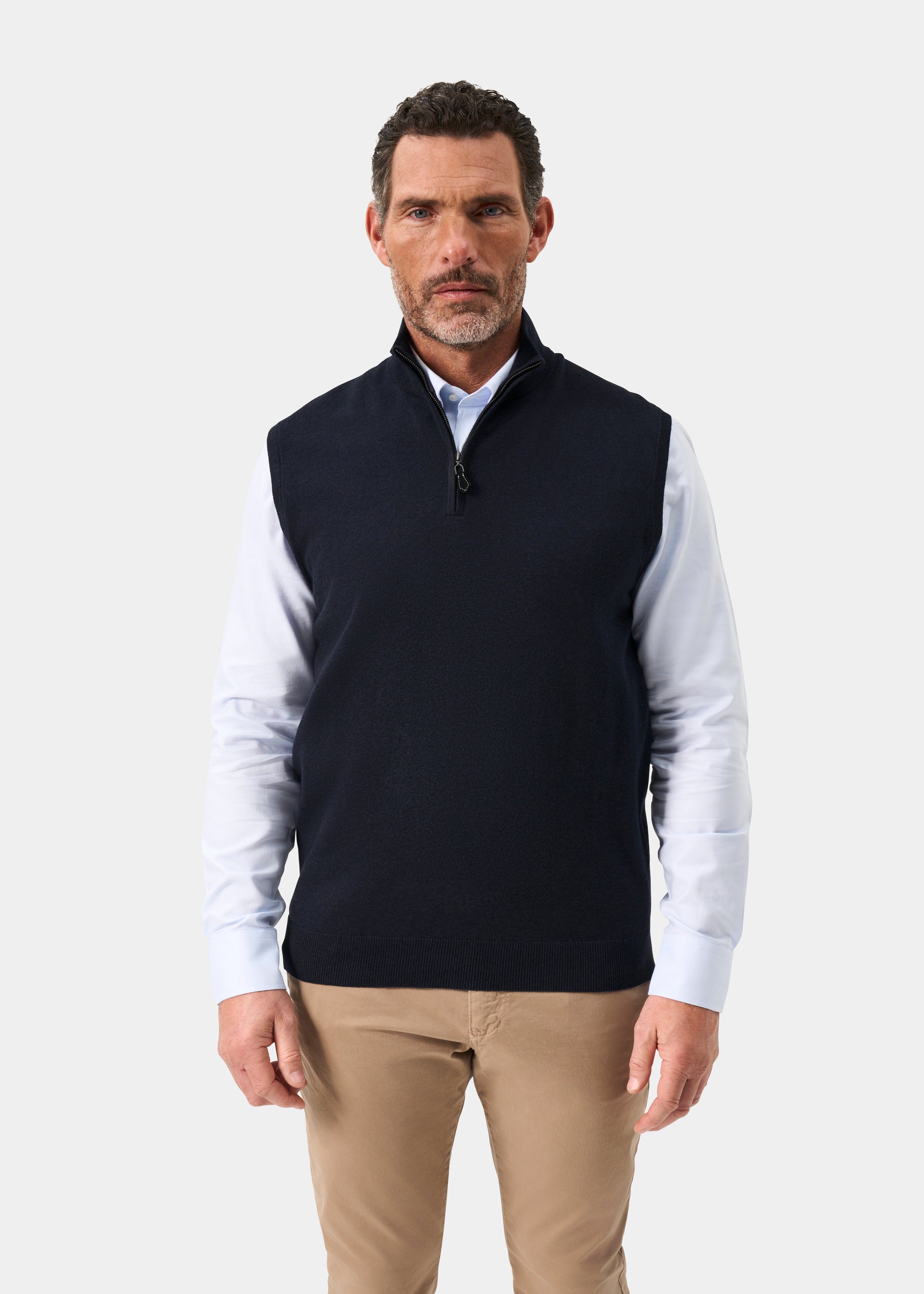 Elevate your layering game with the Rowley Men's Cotton Cashmere 1/4 Zip Gilet in Dark Navy. Crafted from a luxurious cotton-cashmere blend, this versatile piece delivers exceptional softness and warmth without bulk. The quarter-zip design offers easy adjustability for changing conditions, while the refined Dark Navy hue complements any outdoor wardrobe. Perfect for layering over shirts or wearing standalone, this gilet combines timeless style with practical performance—ideal for countryside pursuits and everyday sophistication.